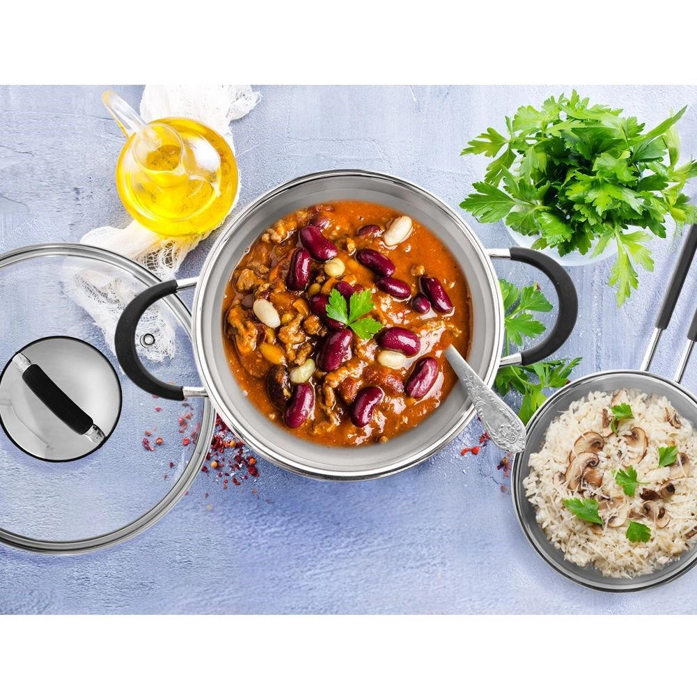 Det elegante rustfri design ser godt ud i køkkenet og på bordet. Gryden klarer supper, saucer og simreretter.