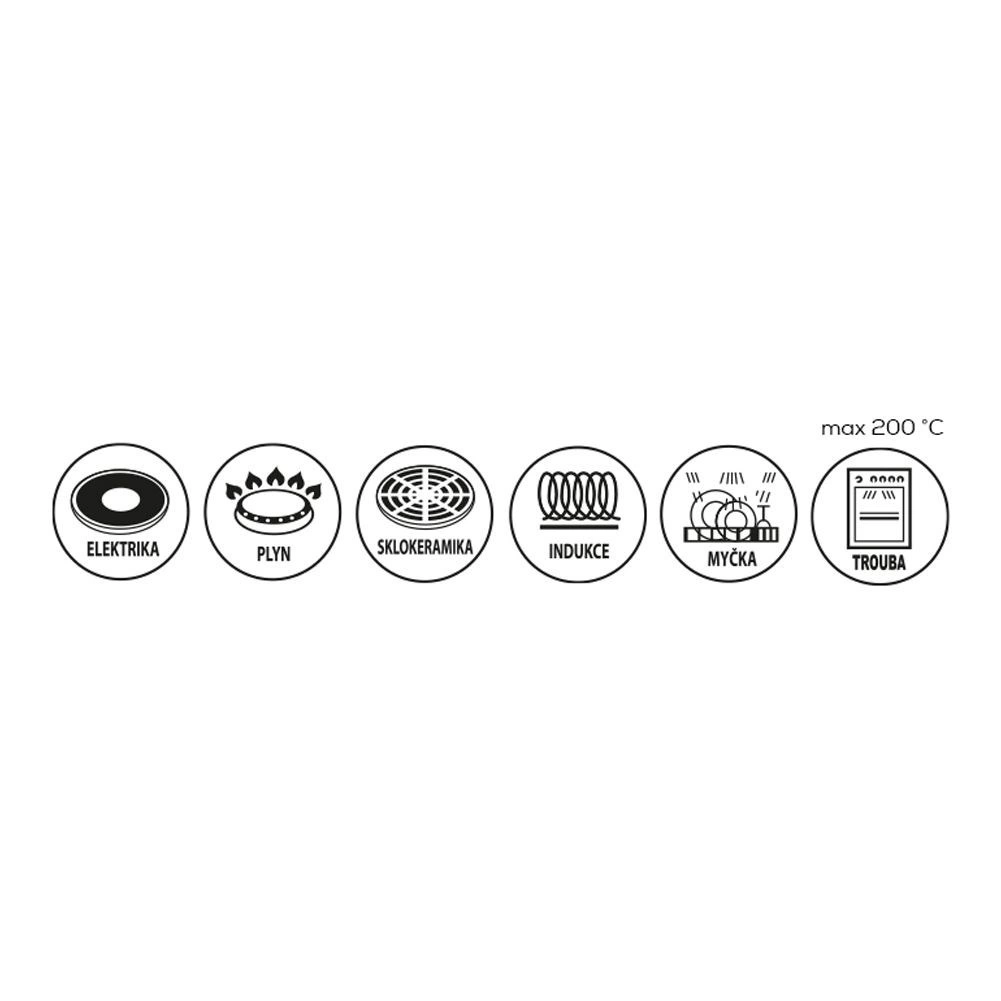 Ergonomiske håndtag belagt med sort silikone forbliver kølige under madlavning, og glaslåget med dampeventil giver kontrol over tilberedningen samt nem afledning af overskydende damp. Gryden er kompatibel med gas-, el-, glaskeramiske, halogen- og induktionskogeplader og tåler ovn uden låg op til 200 °C.