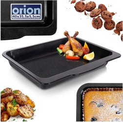 Praktisk rektangulær bageplade af emaljeret stål i målene 40 × 35,5 × 5 cm (indre 37 × 29,5 × 5 cm) til daglig bagning af både søde og salte retter. Modstandsdygtig over for høje temperaturer, nem at rengøre og egnet til opvaskemaskine. De højere kanter sikrer komfortabel bagning af saftige retter uden spild. Originalt produkt fra ORION.