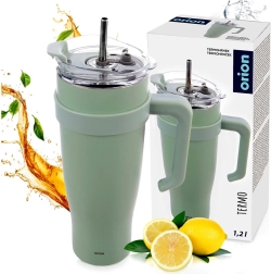 Stor termokrus 1,2 l med hank og metal-sugerør holder dine drikke varme i op til 12 timer og kolde i op til 8 timer. Takket være vakuum-dobbeltvæg, tætsluttende låg og ergonomisk hank er den ideel til rejser, arbejde og hjemmet. Rustfrit stål sikrer holdbarhed og sikker brug.