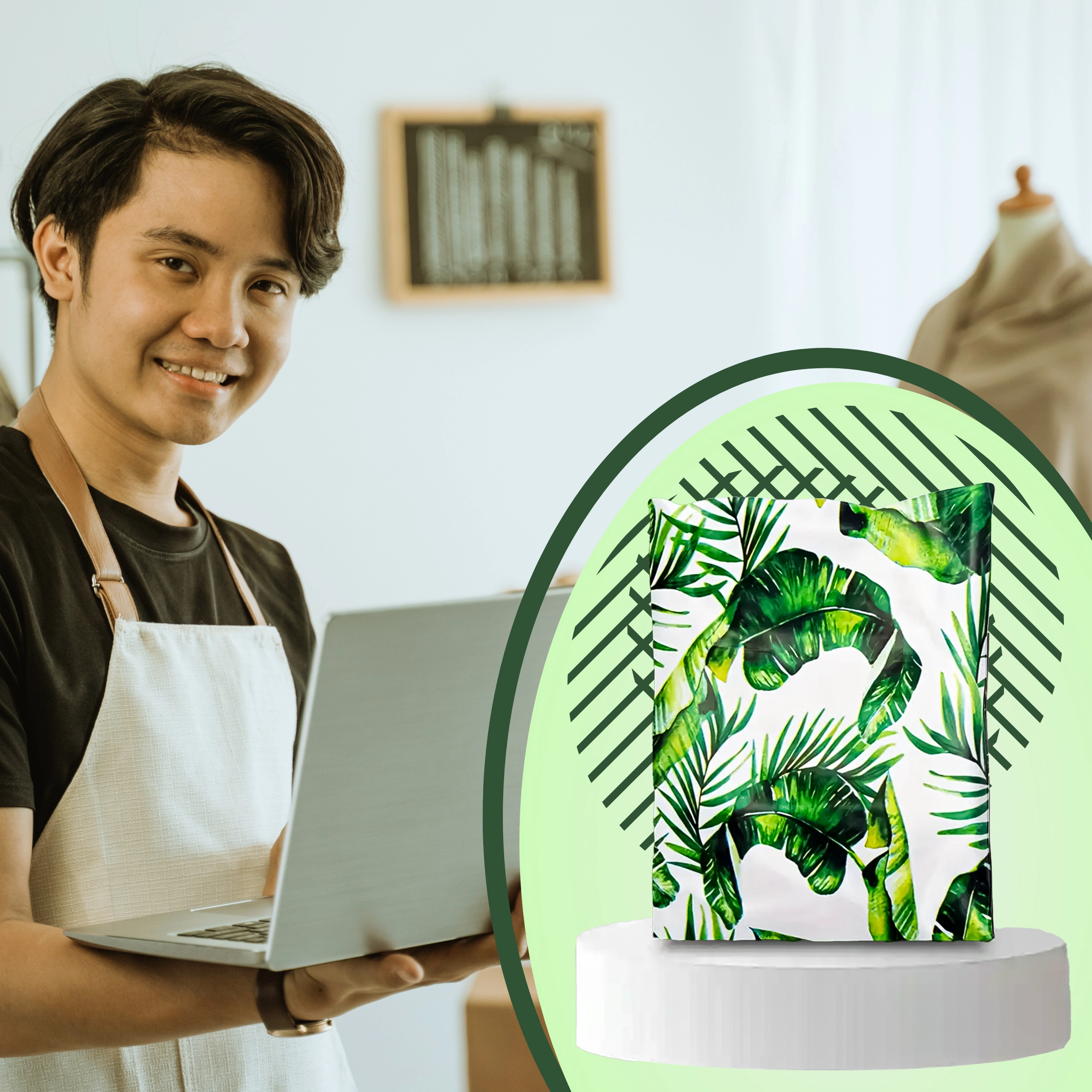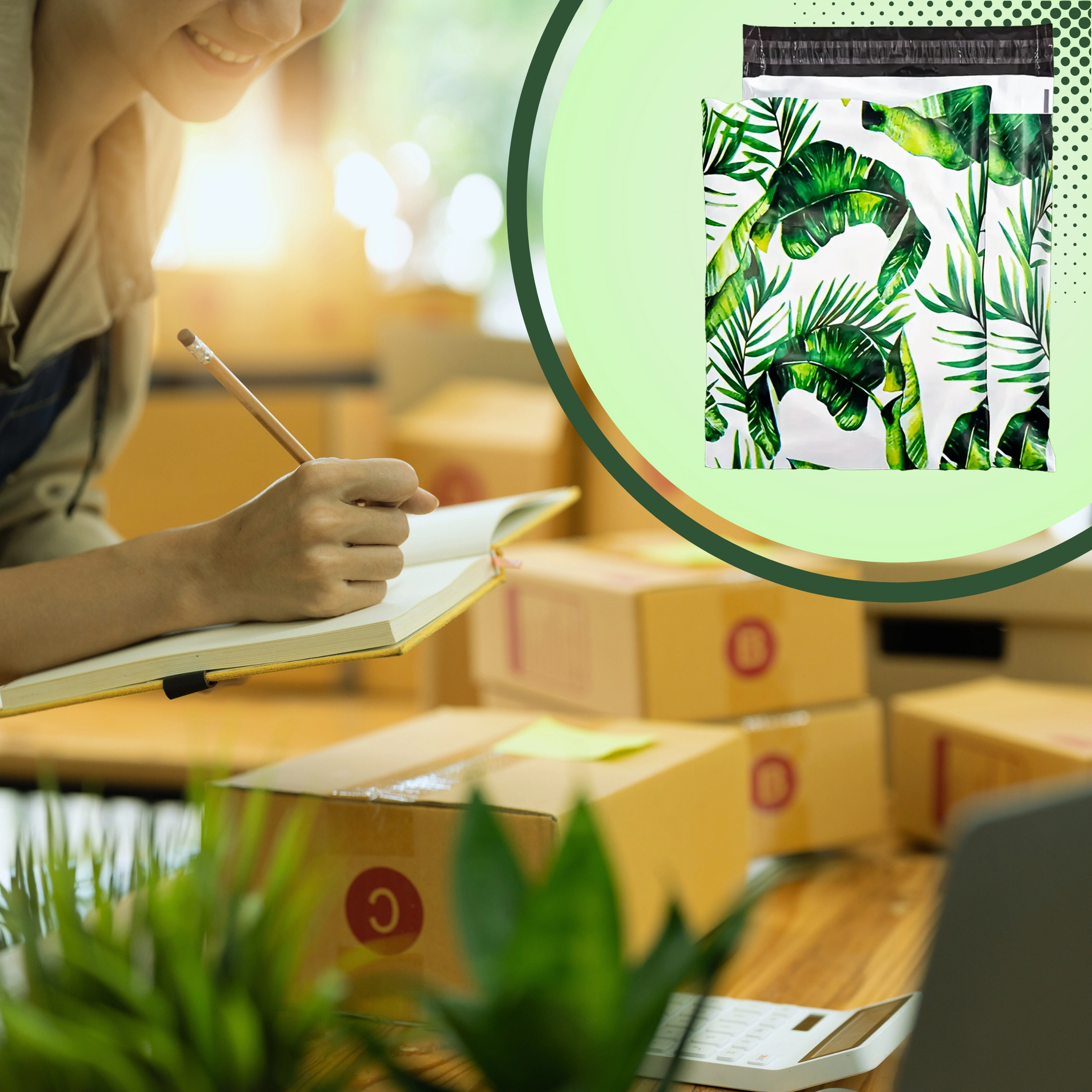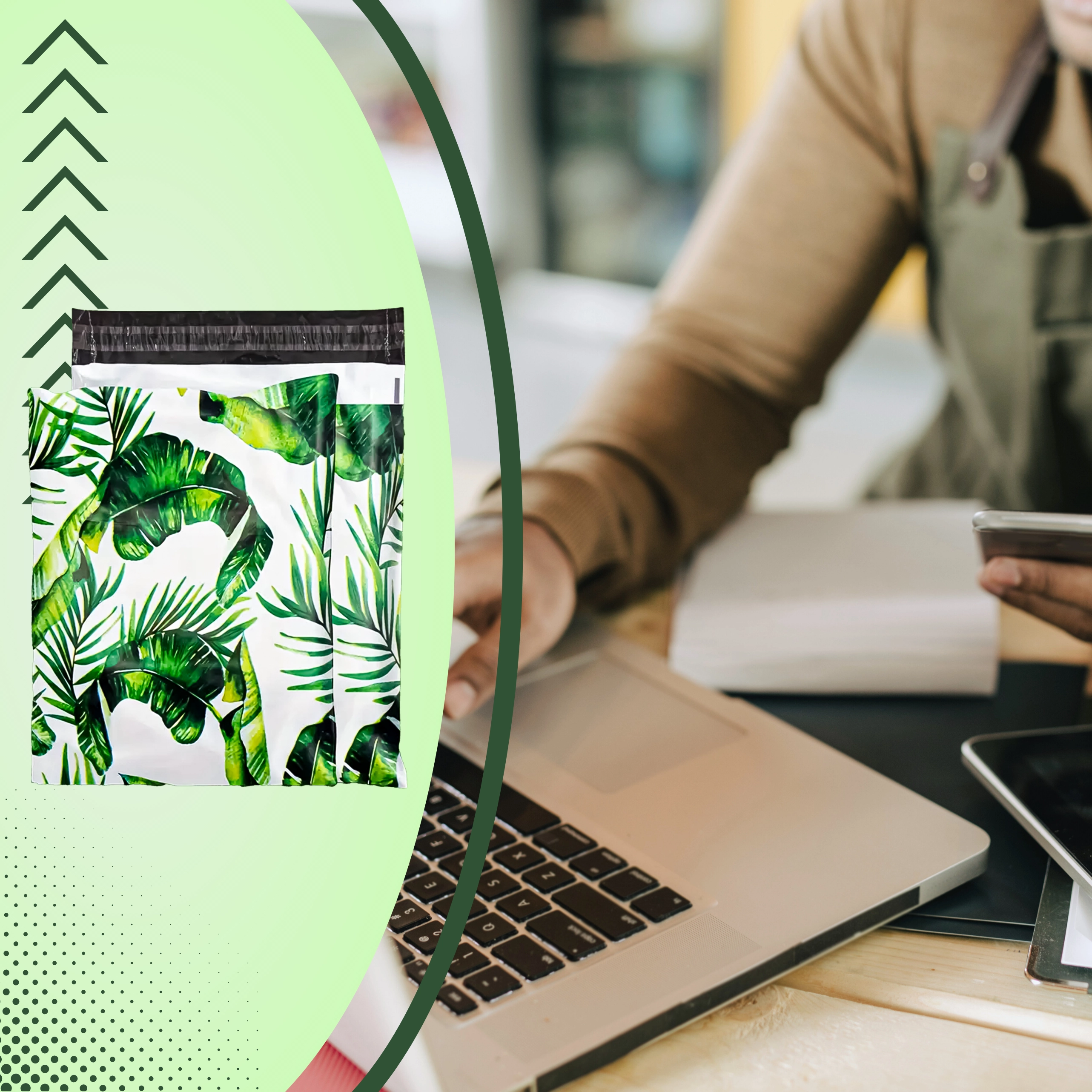 Leder du efter en pålidelig og attraktiv emballageløsning til din webshop eller private forsendelser? Disse plast poly mailers med grønne blade kombinerer holdbarhed, lav vægt og et professionelt udseende. Størrelsen 255 × 370 mm er ideel til tekstiler, accessories, tryksager og andre lettere produkter.