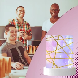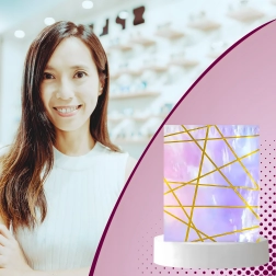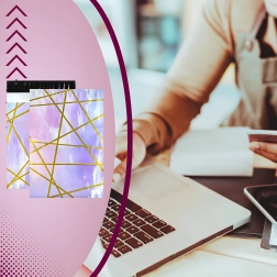 - Repræsentativt udseende – lilla-guld motiv for et professionelt image.
