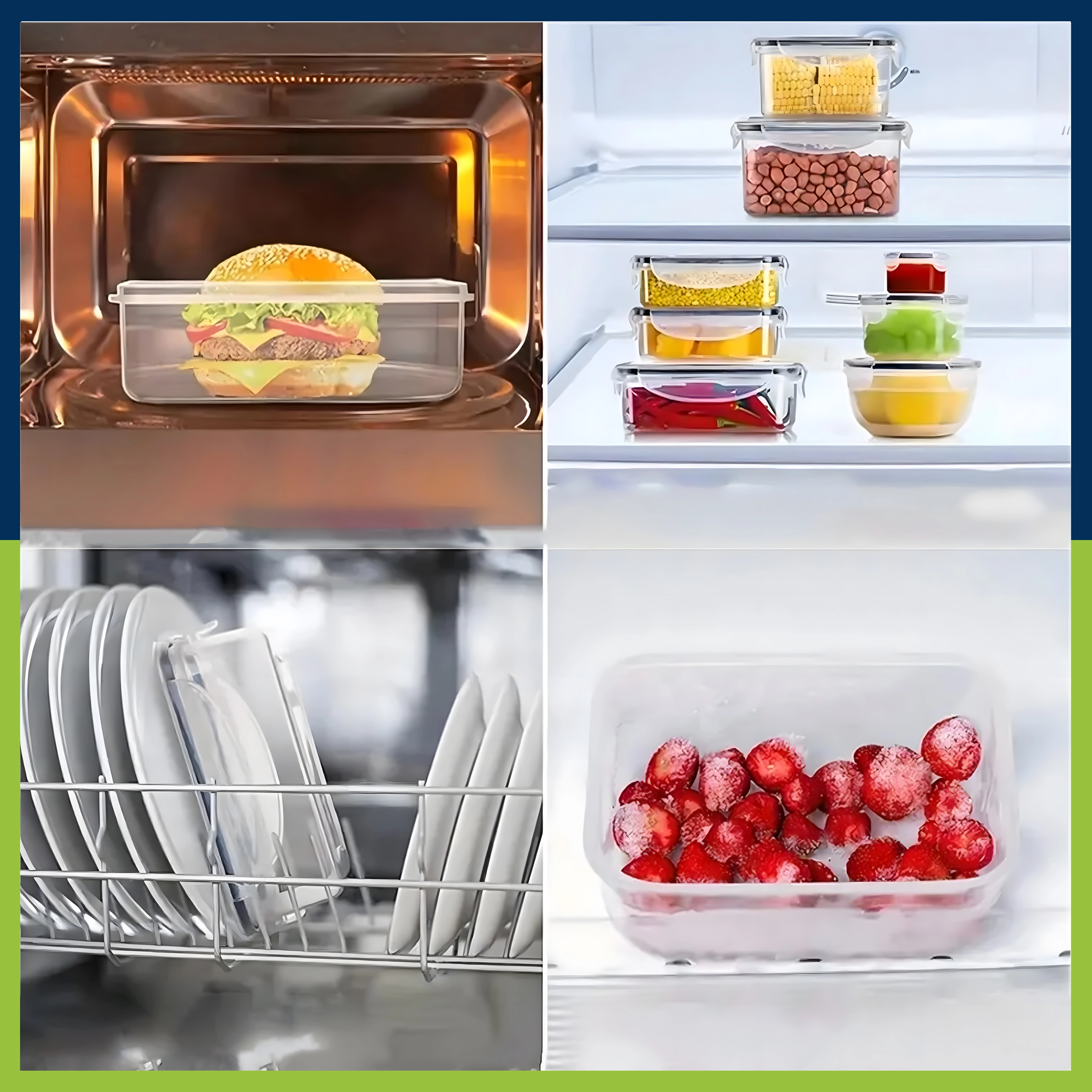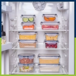Dette alsidige sæt indeholder både små og større beholdere til snacks, frugt, grønt, madrester og meal prep. De gennemsigtige sider gør det nemt hurtigt at identificere indholdet, og de robuste låg med låseklapper sikrer pålidelig tæthed mod lækager og lugte.