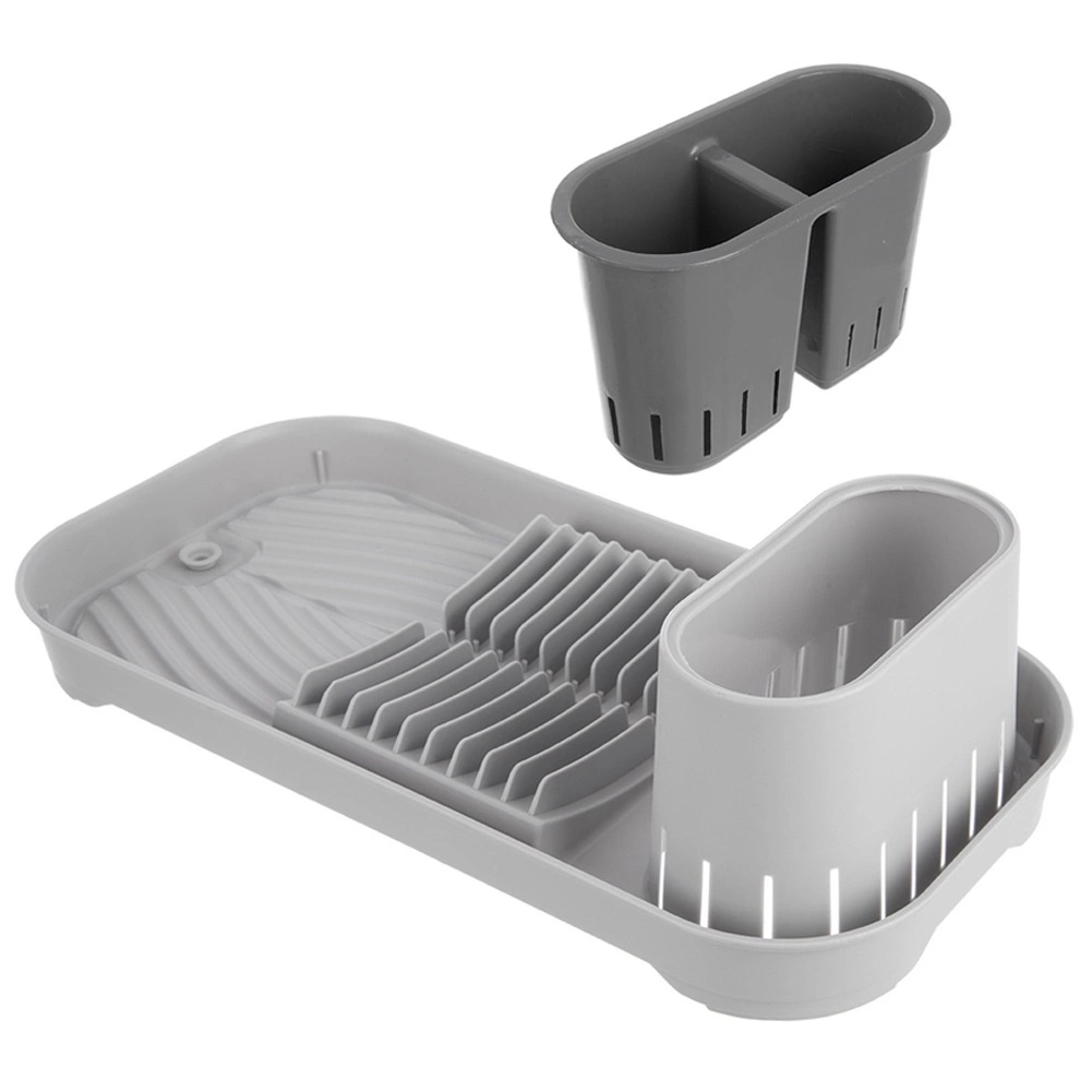 Holder til tallerkener, plads til krus og en aftagelig bestikkurv med to rum. Ideel til små køkkener, lejligheder og campingvogne.