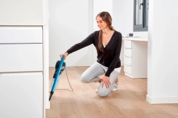 3‑i‑1 tilbehør hjælper dig med målrettet rengøring: sprække‑mundstykke til svært tilgængelige steder og børste til møbler, tekstiler og polstring. Takket være en vægt på kun 2,5 kg er støvsugeren let at håndtere selv ved længere tids støvsugning.