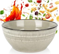 Praktisk keramisk skål med en kapacitet på 750 ml i elegant grå farve, ideel til hverdagsbrug såvel som festlige anledninger. Den har en diameter på 16 cm og en højde på 6,7 cm og tilbyder alsidig anvendelse til supper, morgenmadsprodukter, salater og snacks. Takket være robust stentøj er den velegnet til opvaskemaskine og mikrobølgeovn, og dens klassiske design passer perfekt til enhver køkkenindretning.