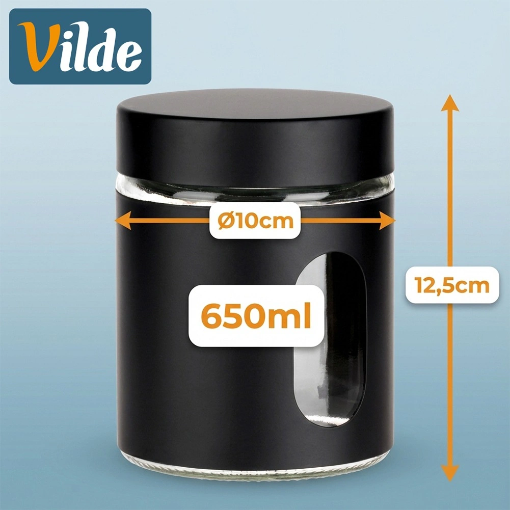 Målene 10 × 12,5 cm og volumen på 650 ml giver ideel kapacitet til daglig brug. Det holdbare glas er let at vedligeholde, og den sorte kappe giver stil og bedre greb. Krukken hjælper med at holde køkkenet overskueligt og maden længere frisk og velsmagende.