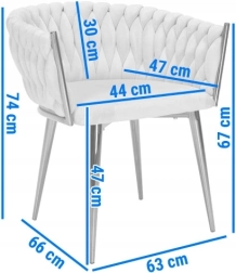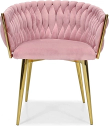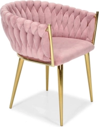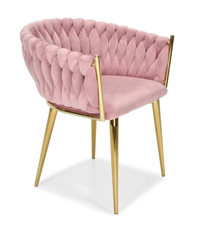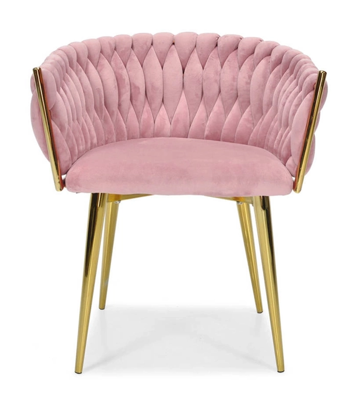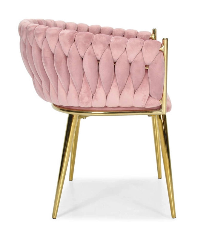 Denne designstol er en ægte juvel i indretningen. Den flettede velourpolstring skaber en iøjnefaldende 3D‑struktur, der straks fanger opmærksomheden og virker særdeles sofistikeret. Pudderrosa farve er diskret og alligevel markant – ideel til både moderne og glamourøse indretninger.
