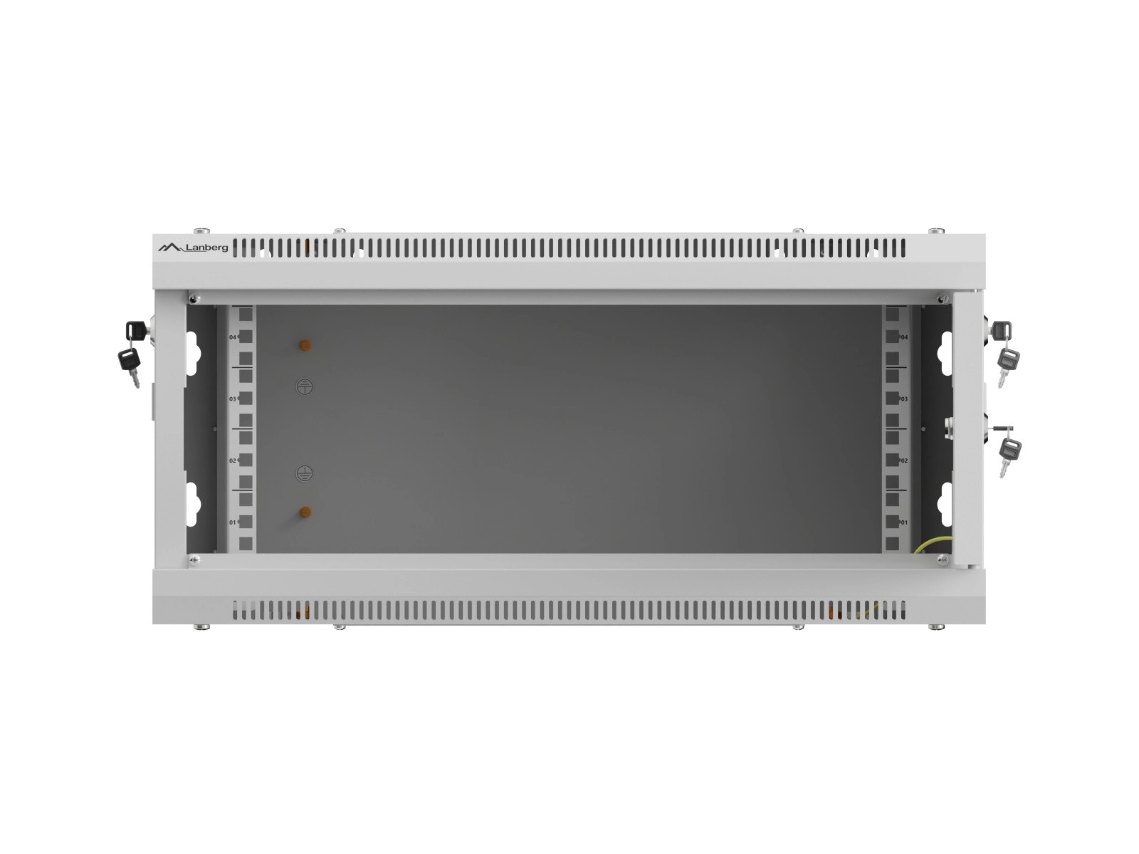 LANBERG WF01-serien er en robust og praktisk løsning til opbevaring af netværkselementer, patchpaneler og mindre IT-udstyr. Skabet er fremstillet af kvalitetsstål, har ventilerede paneler for optimal luftgennemstrømning og sikker låsning af for- og sidedøre for at beskytte dit udstyr.