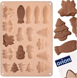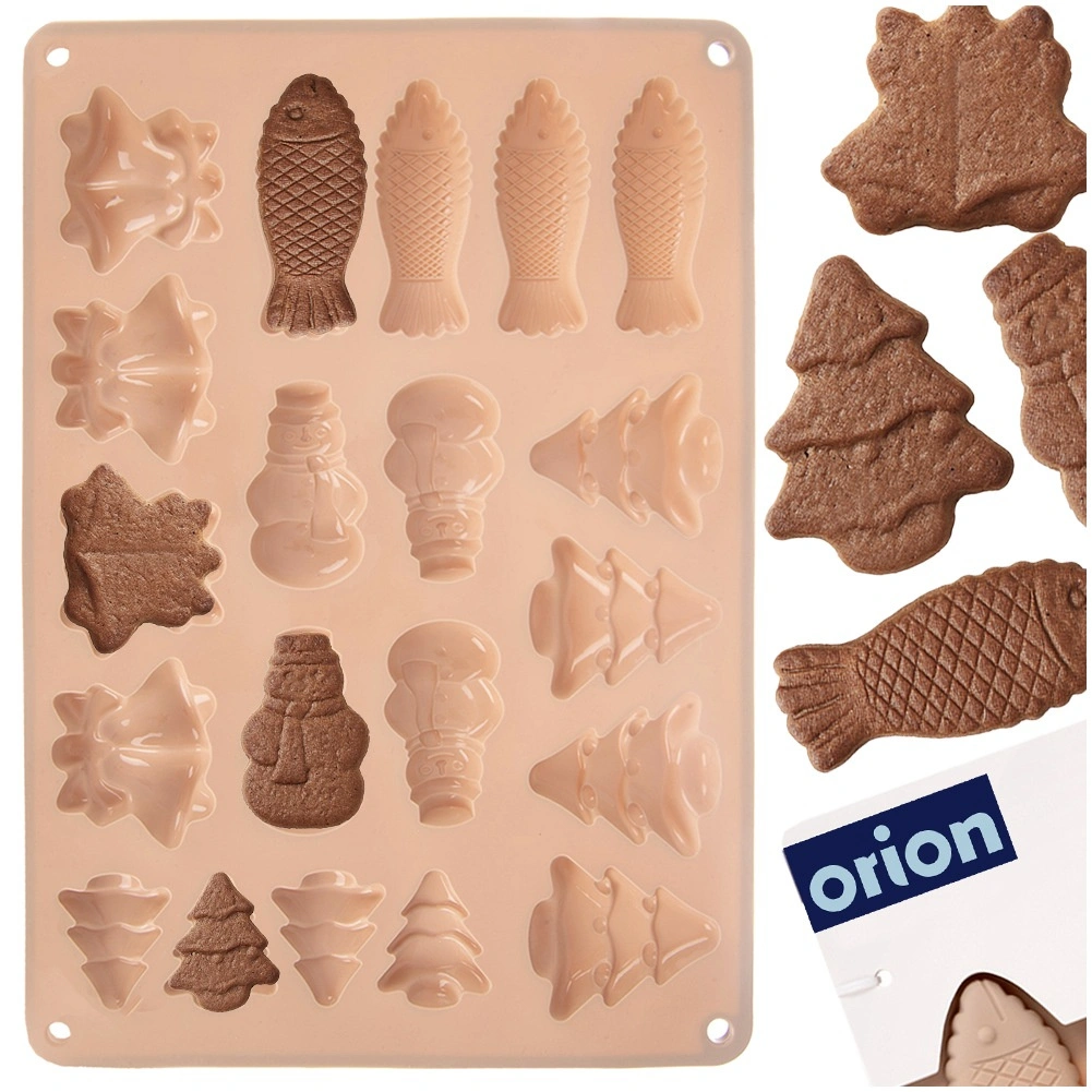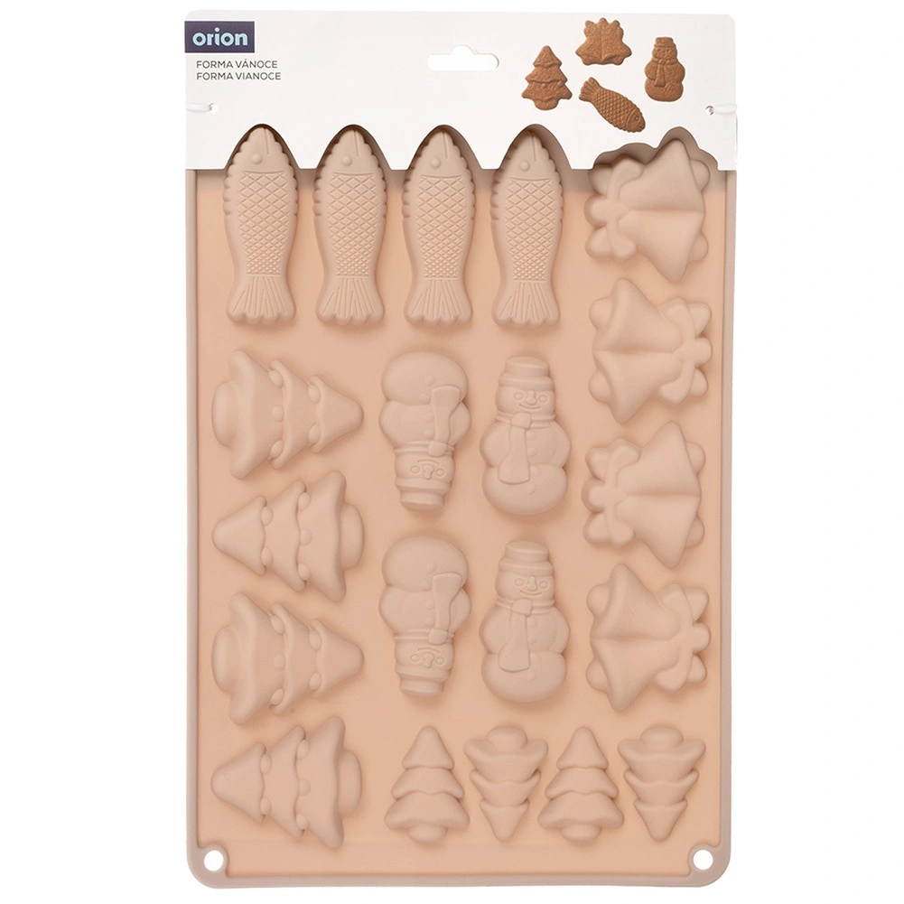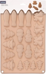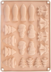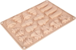 Denne beige silikoneform med målene 34 × 24,5 × 1 cm er ideel til at lave julesmåkager, honningkager, chokolader og praliner. Silikone af høj kvalitet sikrer nem udtagning uden at hænge fast samt jævn bagning eller afkøling. Af én portion laver du op til 20 stykker i 5 forskellige former.