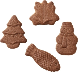 En praktisk silikoneform til bagning og nedkøling, som lader dig lave op til 20 stykker sødt i fem vintermotiver – juletræ, klokke, snemand og fisk. Takket være den fleksible silikone slipper formene let, intet hænger fast, og formen er egnet til ovn, mikrobølgeovn og fryser. Derudover kan den nemt vaskes i opvaskemaskinen.