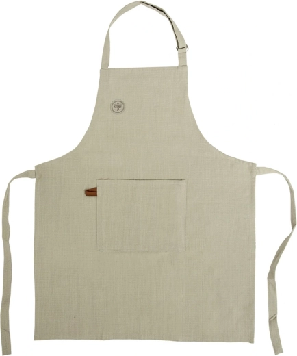 Nakkerem med spænde og lange bindebånd gør det nemt hurtigt at tilpasse både længde og omfang – forklædet sidder godt på både slanke og mere robuste kropstyper.