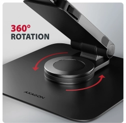 AXAGON STND-LRB stativet giver maksimal komfort og ergonomi til arbejde hjemme og på kontoret. Takket være 360° drejemekanismen kan du nemt dele skærmen, tilpasse orienteringen og spare plads på skrivebordet. Dobbeltled og udtrækkelig arm (op til 60 mm, 7 positioner) gør det muligt at indstille den ideelle højde og afstand for øjnene og justere den bærbare i niveau med en ekstern skærm.
