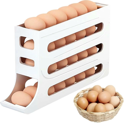 Praktisk æggeholder til køleskabet med kompakt rutsjekonstruktion, som gør det let at tage æg ud og lægge dem i igen. Takket være de let formede skinner vælter æggene ikke og er bedre beskyttet mod at gå i stykker. Pladsbesparende i køleskabet, nem håndtering og kapacitet op til 30 æg gør denne organizer til et ideelt tilbehør i enhver husholdning.