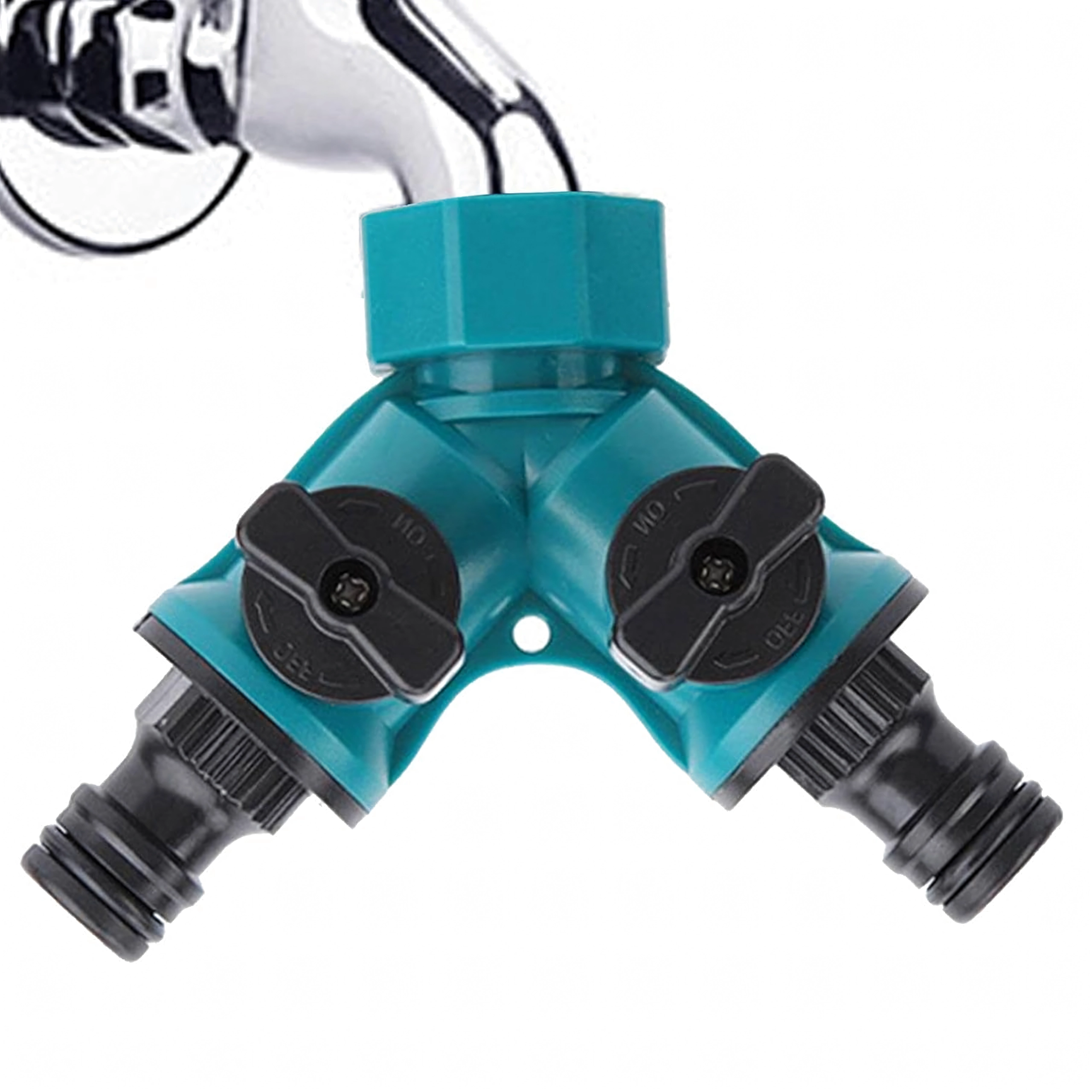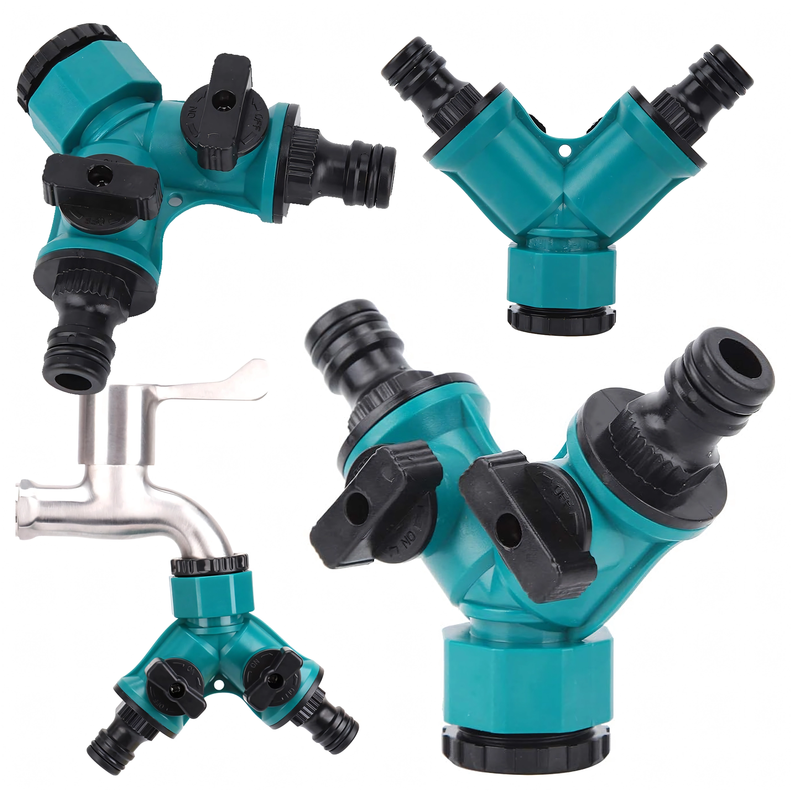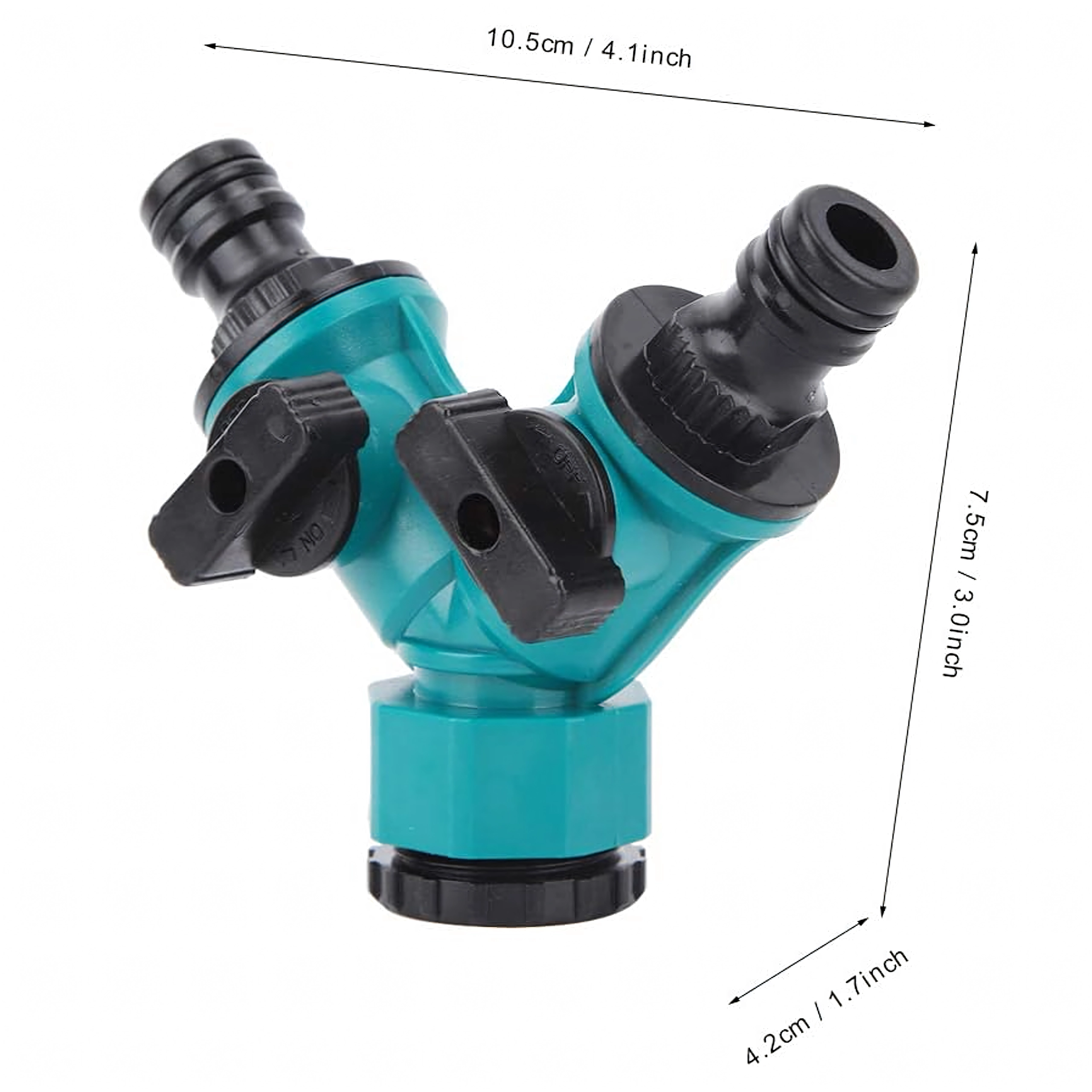 Udvid mulighederne for din udendørshane med en Y-fordeler, der lader dig tilslutte to slanger samtidig og styre hver for sig. Det robuste plastkorpus med metalgevind og lynkoblinger giver pålidelig tætning og nem montering blot ved håndopstramning.