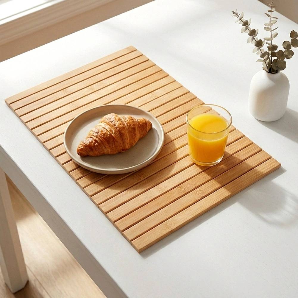 Bambus er hårdt, stærkt og let at vedligeholde. Underlaget beskytter mod varme, fugt og ridser og ser samtidig elegant ud.