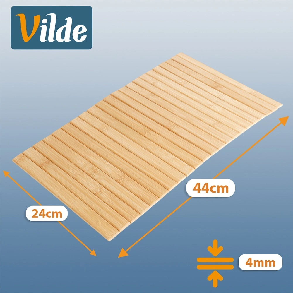 Dette bambusunderlag på 44 × 24 cm er en alsidig hjælper til både køkken og stue. Naturlig bambus giver indretningen et let, moderne look, mens de solide lameller pålideligt beskytter overflader mod varme, fugt og ridser. Takket være det fleksible design tilpasser det sig nemt til forskellige overflader.