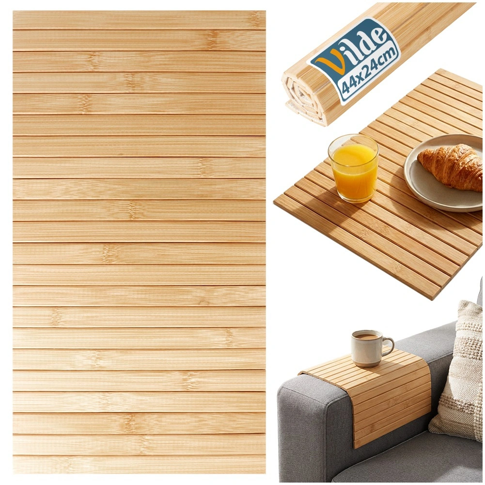 Praktisk bambusunderlag beskytter bord og andre overflader ved måltider og daglig brug. Takket være den rullelige konstruktion lægger du den nemt i skuffen, den har et naturligt look og er modstandsdygtig over for almindelig slitage. Kan også bruges som sofabakker på armlænet til en kop eller småting.