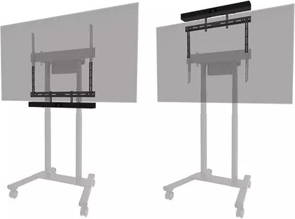 Holderen gør det muligt at placere videobaren præcis dér, hvor det giver mest mening i dit miljø – over eller under displayet – med trinfri højdejustering for perfekt justering.