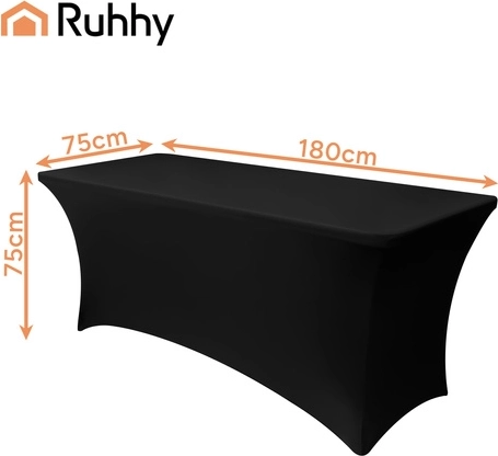 Praktisk og elegant elastisk betræk til banketbord fra RUHHY i sort, som forvandler ethvert bord på et øjeblik. Sidder perfekt uden at krølle, glider ikke og kræver ingen strygning. Ideelt til catering, bryllupper, fester og firmaarrangementer – skaber et glat, professionelt look og beskytter samtidig bordplade og ben.