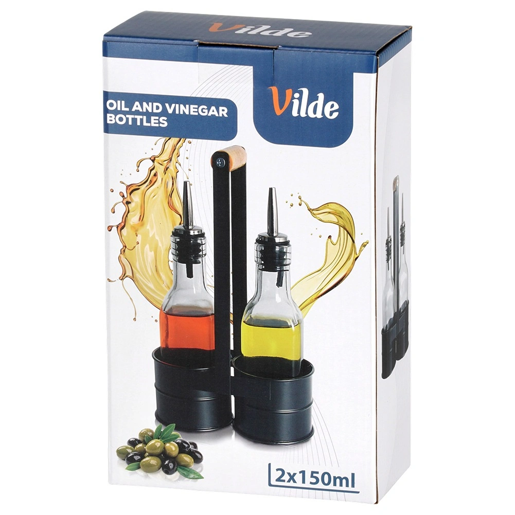 Sæt med glasflasker til olie og eddike i stativ 2×150 ml