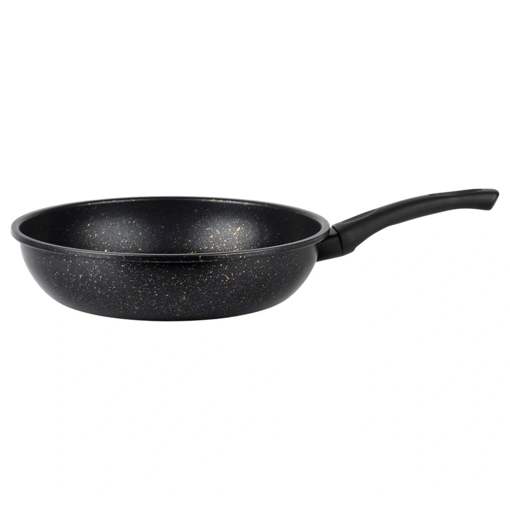 Oplev tidløst design og pålidelig ydeevne. Granitpanden BASIC LINE 24 cm er kendetegnet ved en robust non-stick belægning, som gør det lettere at tilberede sunde og velsmagende retter med et minimum af olie. Takket være den jævne varmefordeling opnår du fremragende resultater ved både stegning og sautering.