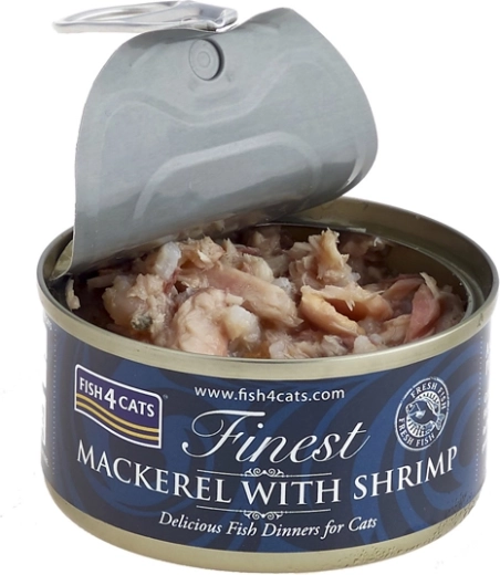 Forkæl din kat med en lækker og afbalanceret godbid fra Fish4Cats med makrel og rejer. Dåsen med et meget højt indhold af fisk giver naturlig og sund ernæring, er rig på omega-3-fedtsyrer og indeholder letfordøjelige proteiner for daglig vitalitet.