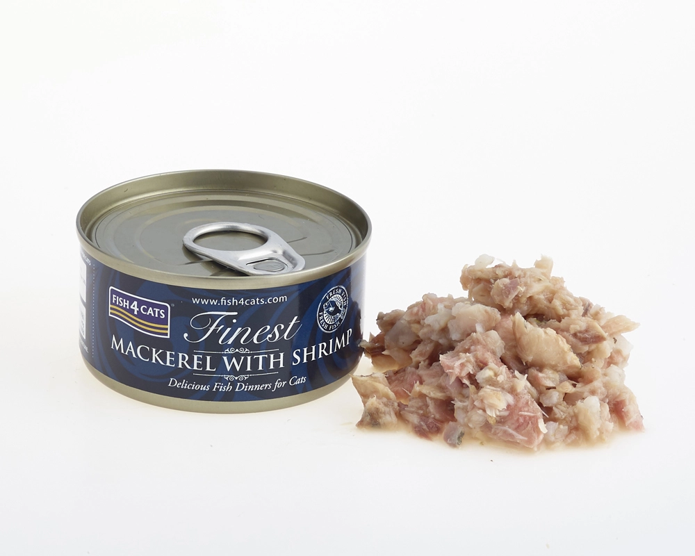 Fish4Cats med makrel og rejer er saftigt foder, som katte elsker. Opskriften med 65 % makrel og 5 % rejer giver en naturlig kilde til omega-3, understøtter sund pels og hud og er samtidig skånsom for fordøjelsen. Takket være den enkle sammensætning uden unødvendige tilsætningsstoffer er den ideel selv til sarte katte.