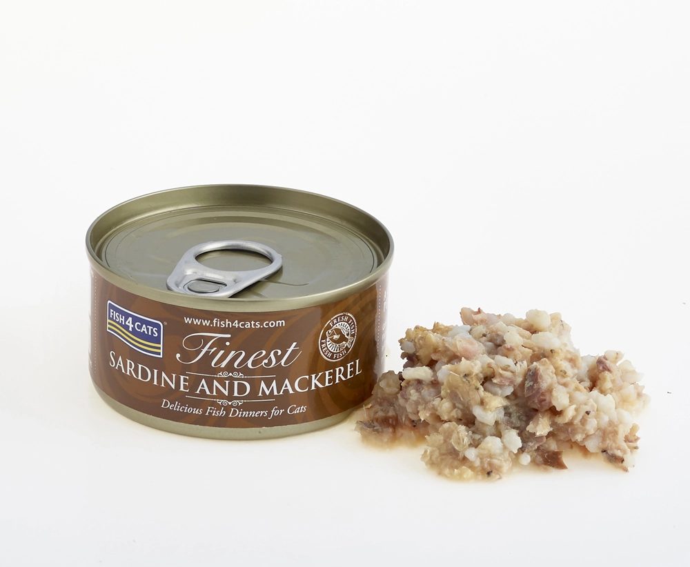 FISH4CATS Finest kombinerer saftige stykker af sardiner og makrel i fiskebouillon for fremragende smag og fordøjelighed. Takket være det meget høje indhold af fisk tilbyder den katte en naturlig kilde til omega-3 til støtte for hud, pels og overordnet vitalitet.