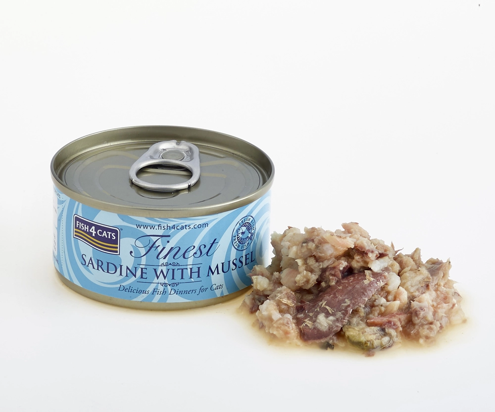 Fish4Cats dåse med sardiner og muslinger tilbyder katte et naturligt velsmagende og ernæringsmæssigt afbalanceret foder. Takket være det meget høje indhold af fisk giver det kvalitetsproteiner, værdifulde omega-3 fedtsyrer og fremragende fordøjelighed. Den enkle sammensætning uden unødige tilsætningsstoffer understøtter vitalitet, blank pels og generel kondition.