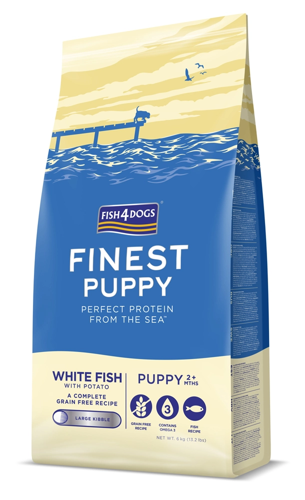 FISH4DOGS Finest til hvalpe med hvid fisk og kartofler er velsmagende og næringsrig hundemad, skabt specifikt til voksende hvalpes behov. Hvid fisk fra det nordlige Atlanterhav er en naturlig kilde til omega-3 fedtsyrer, som støtter korrekt udvikling af nervesystemet, kognitive funktioner samt god syns- og hjertesundhed. Den kornfrie opskrift hjælper desuden den skånsomme fordøjelse og er et fremragende valg til hvalpe med sensitiv mave.