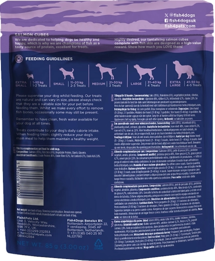 Forkæl din hund med en velsmagende belønning: Fish4Dogs Love med laks i terninger. Disse godbidder er kornfri, rige på omega-3 og lavet af 85 % laks, hvilket understøtter sund hud og skinnende pels, smidige led og generel vitalitet. Perfekt som daglig snack og som motivation under træning.