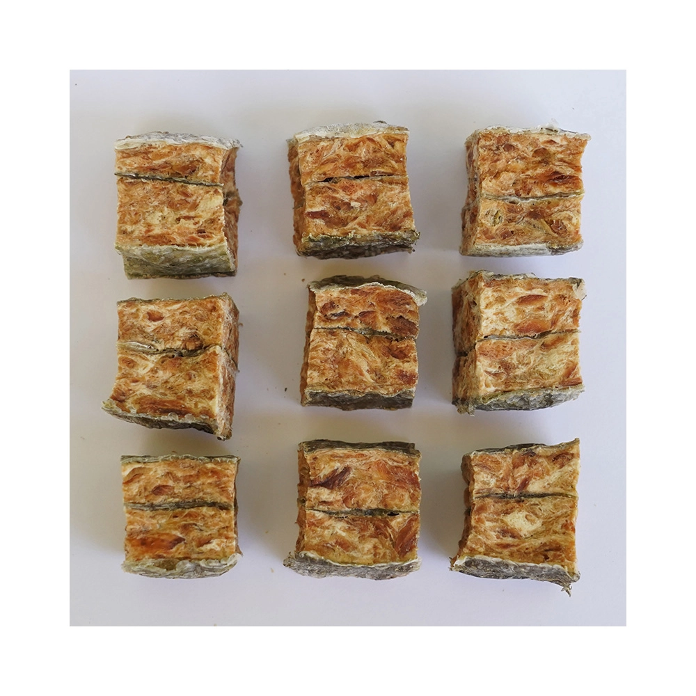 Laks (85 %), fiskehud (6 %), vegetabilsk protein, stivelse, glycerin