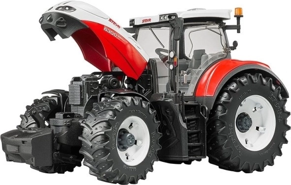 Den realistiske traktor STEYR 6300 Terrus CVT fra BRUDER i skala 1:16 begejstrer både små og store teknikentusiaster. Den tilbyder åbnbar motorhjelm og døre, affjedret foraksel, aftagelige hjul og højdejusterbart anhængertræk. Den glasindfattede kabine af klart, brudsikkert plastik og kompatibiliteten med bworld-figurer sikrer fantastisk leg både inde og ude. Fremstillet i Tyskland af kvalitetsABS-plast.