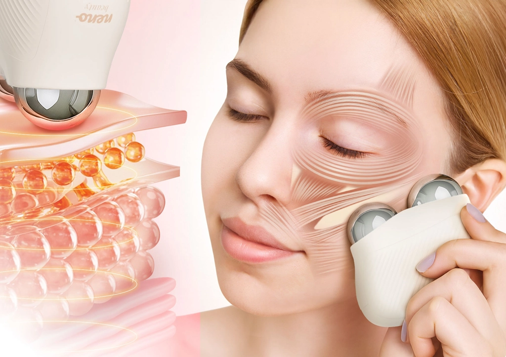 Skånsomme elektriske EMS‑impulser stimulerer muskelfibrene til korte, kontrollerede kontraktioner. Regelmæssig brug understøtter hudens tonus og elasticitet og hjælper med visuelt at fremhæve ansigtstræk.