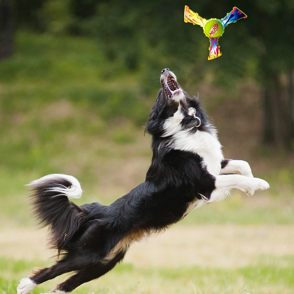 Den tre-armede konstruktion med centralt greb hjælper legetøjet med at glide stabilt gennem luften, så din hund har mere tid til at gribe det.
