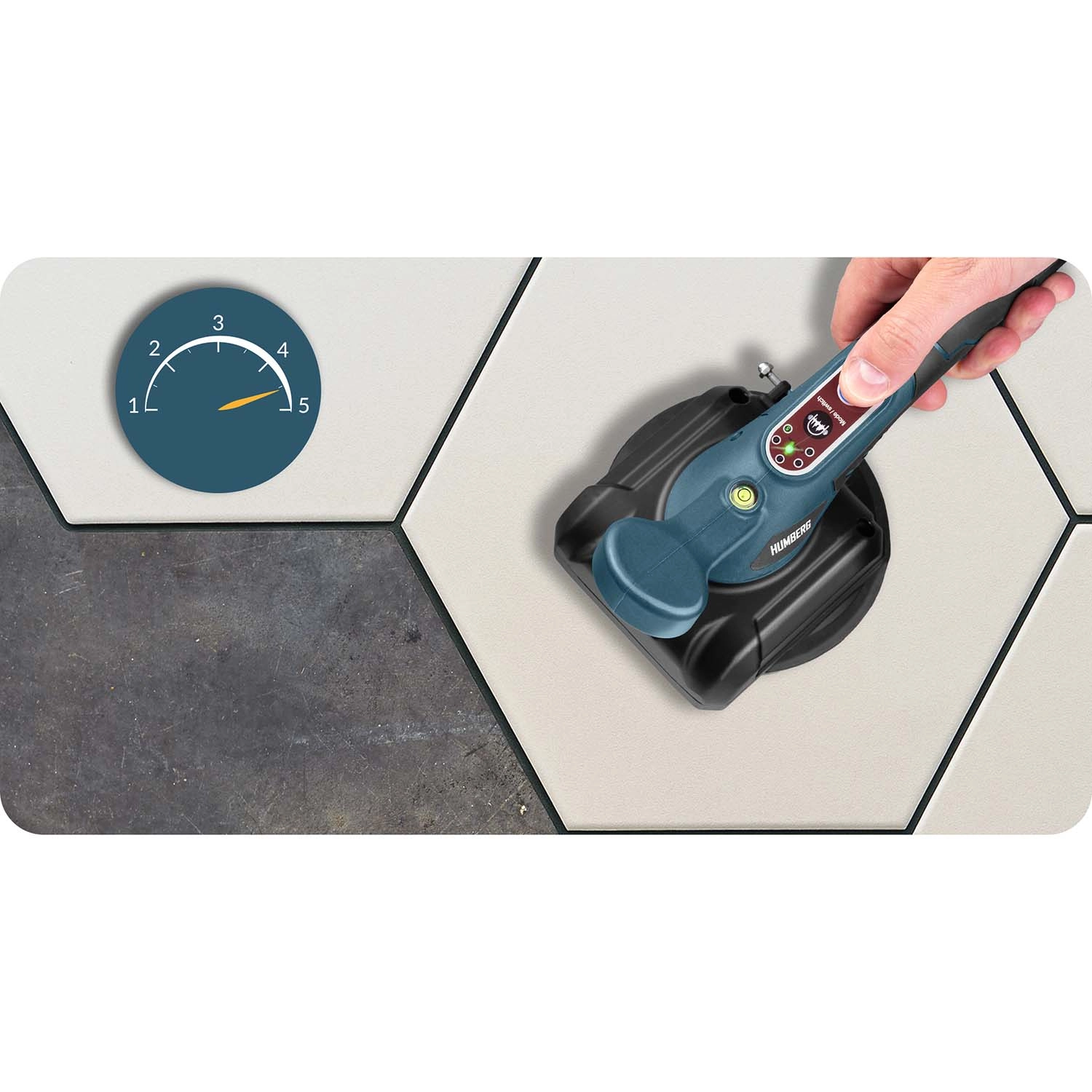 Den vibrerende vakuumsuger HUMBERG kombinerer høj vedhæftning med smart vibrationsteknologi for perfekt fliseplacering. Vibrationerne hjælper med jævn fordeling af klæb, udpresning af luftbobler og opnåelse af en præcis, plan overflade uden unødig manuel efterpresning. Resultatet er hurtigere arbejde og en mere kvalitetspræget finish uden efterfølgende afskalning.