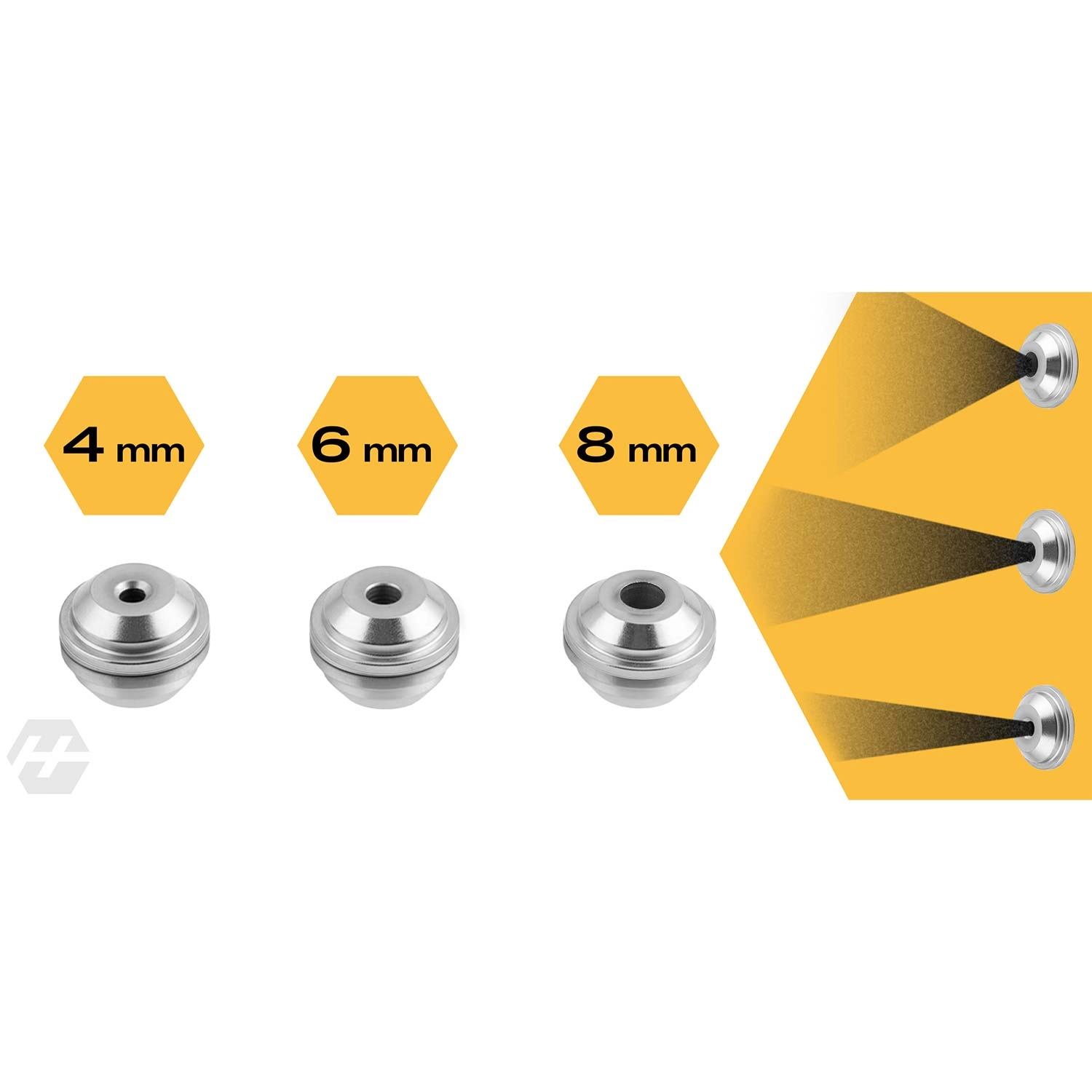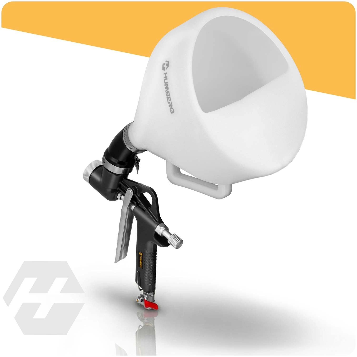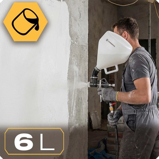 Den pneumatiske HUMBERG-pistol er et alsidigt værktøj til påføring af tyndlags- og strukturerede puds, spartelmasser og dekorative blandinger. Takket være den store beholder på 6 l kan du arbejde kontinuerligt uden hyppig genopfyldning, mens valget mellem 3 udskiftelige dyser gør det muligt præcist at tilpasse gennemstrømningen til materialets viskositet og den ønskede effekt.
