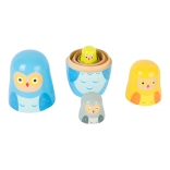 Denne træmatrjosjka i form af en uglefamilie tilbyder tidløs leg med en klar læringsmæssig værdi. Når børn åbner og sætter figurerne i hinanden, træner de præcist greb, tålmodighed og størrelsesgenkendelse. Hver ugle er omhyggeligt malet i attraktive farver, der indbyder til leg og udforskning.