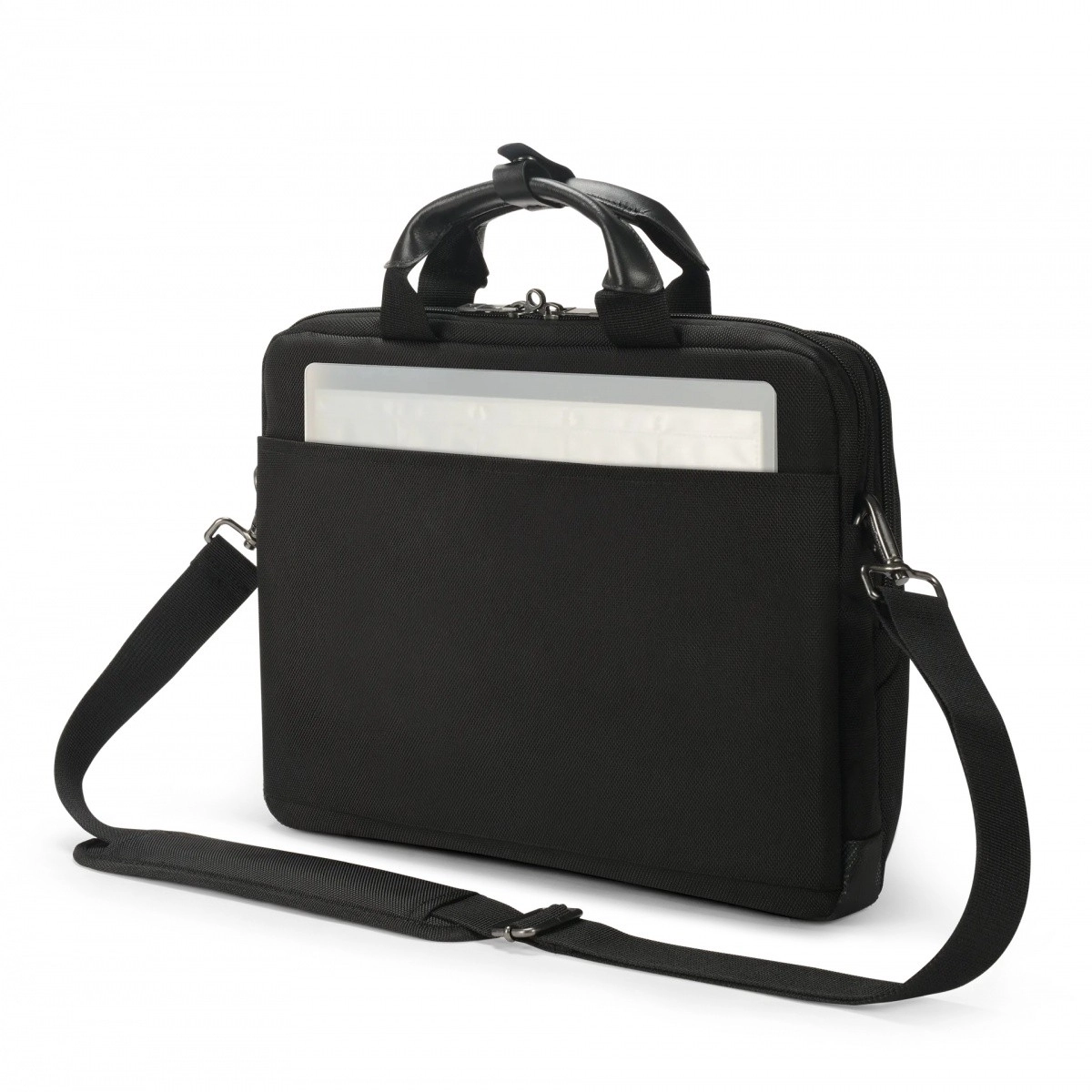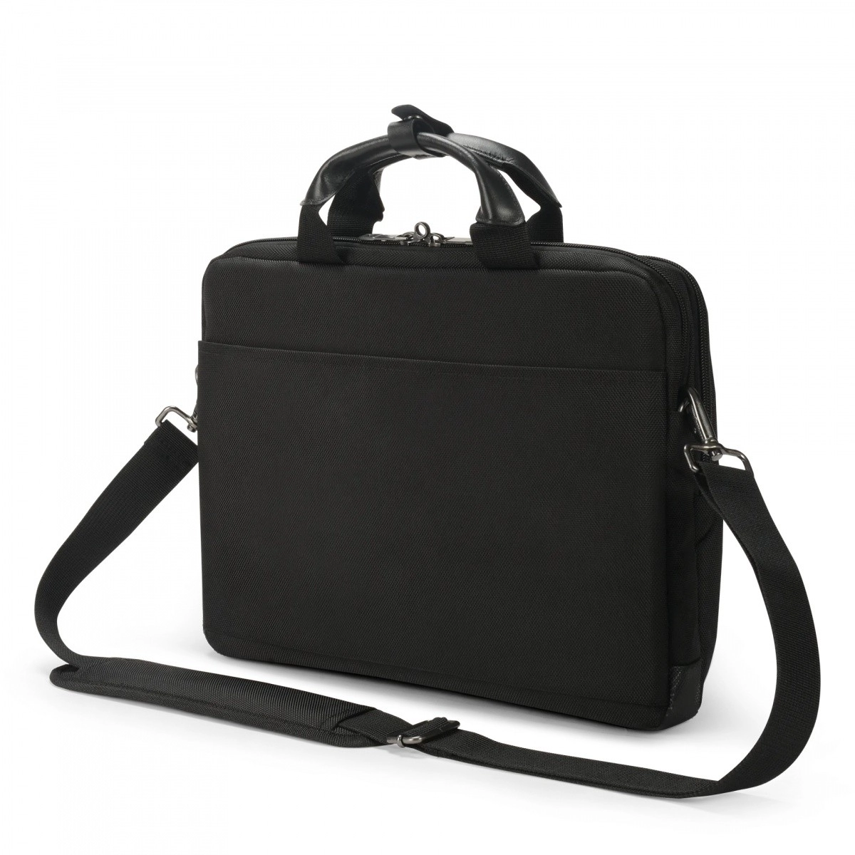 Det polstrede hovedrum beskytter din laptop mod stød, frontlommer med organisator rummer mus, oplader og notesblok, og den justerbare skulderrem sammen med de behagelige håndtag gør transport nemmere. Metallynlåse og spænder understreger den lange levetid ved hyppig brug.
