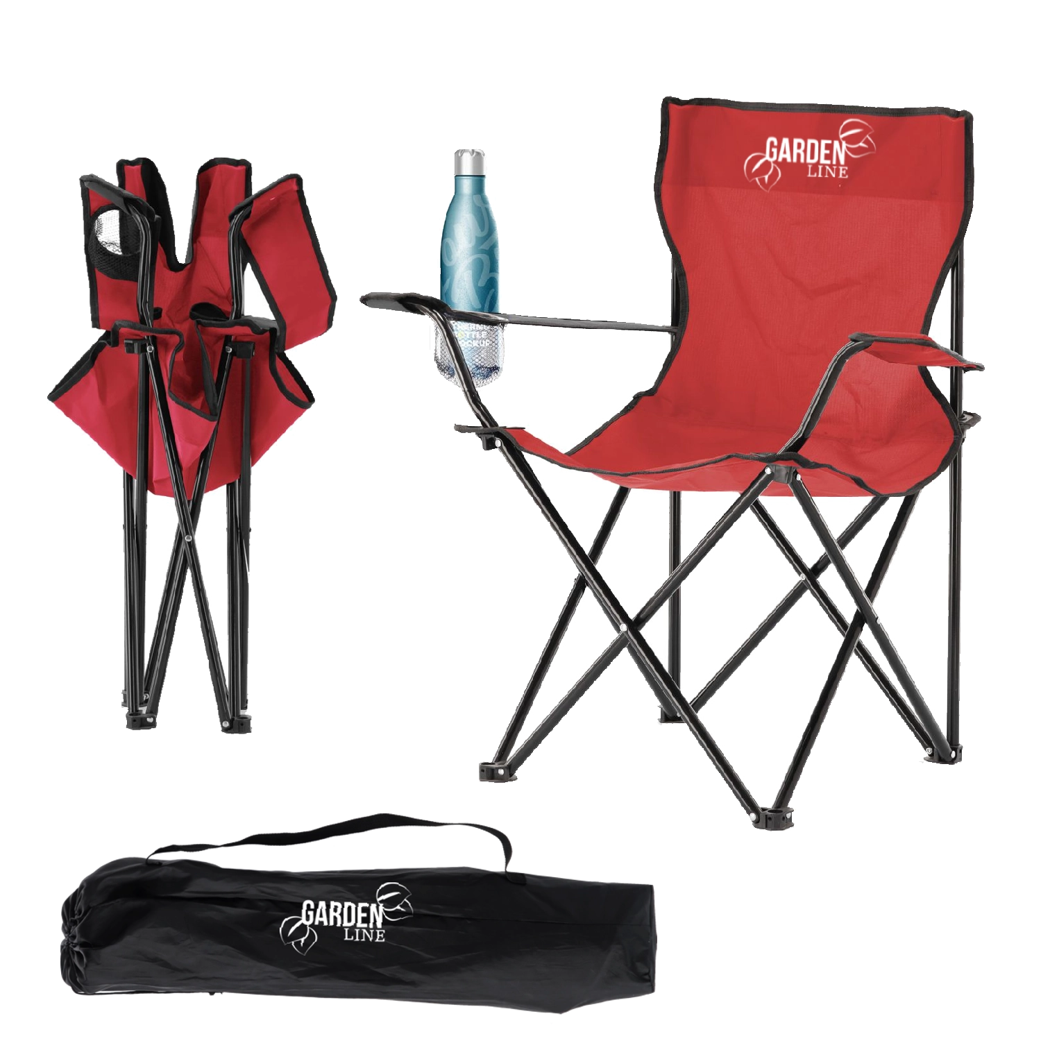For maksimal komfort er stolen udstyret med en integreret kopholder i armlænet. Let, bærbar og alsidig – ideel til camping, fiskeri, festivaler, strand, have eller sportsbegivenheder.