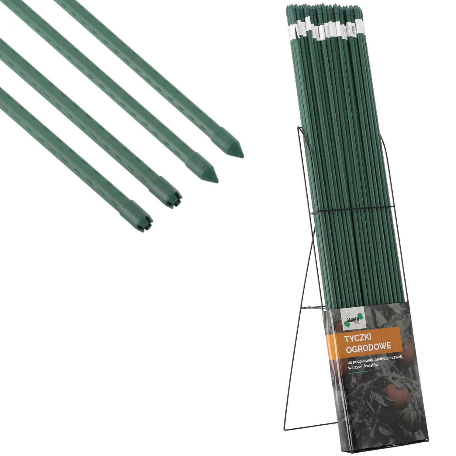 Denne beklædte pind er ideel til støtte af klatreplanter, buske, sarte blomster samt grøntsager og frugtplanter. Metalkernen giver styrke, og polyethylenoverfladen beskytter mod korrosion og fugt. Der medfølger en stålfod, som udvider mulighederne for forankring og organisering i bed eller drivhus.