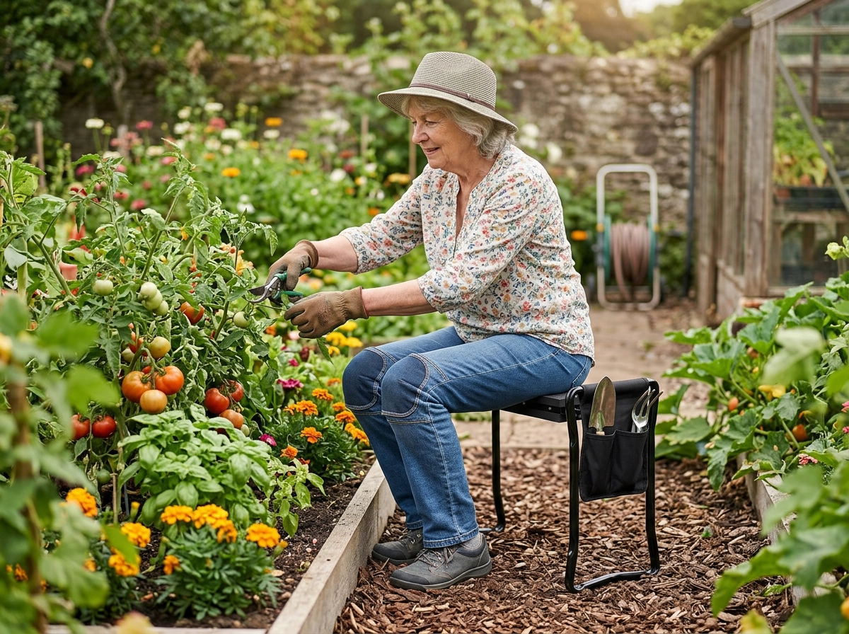 Med en hurtig vending skifter du mellem en blød knæler og et stabilt sæde. Ideel til plantning, lugning og pauser.