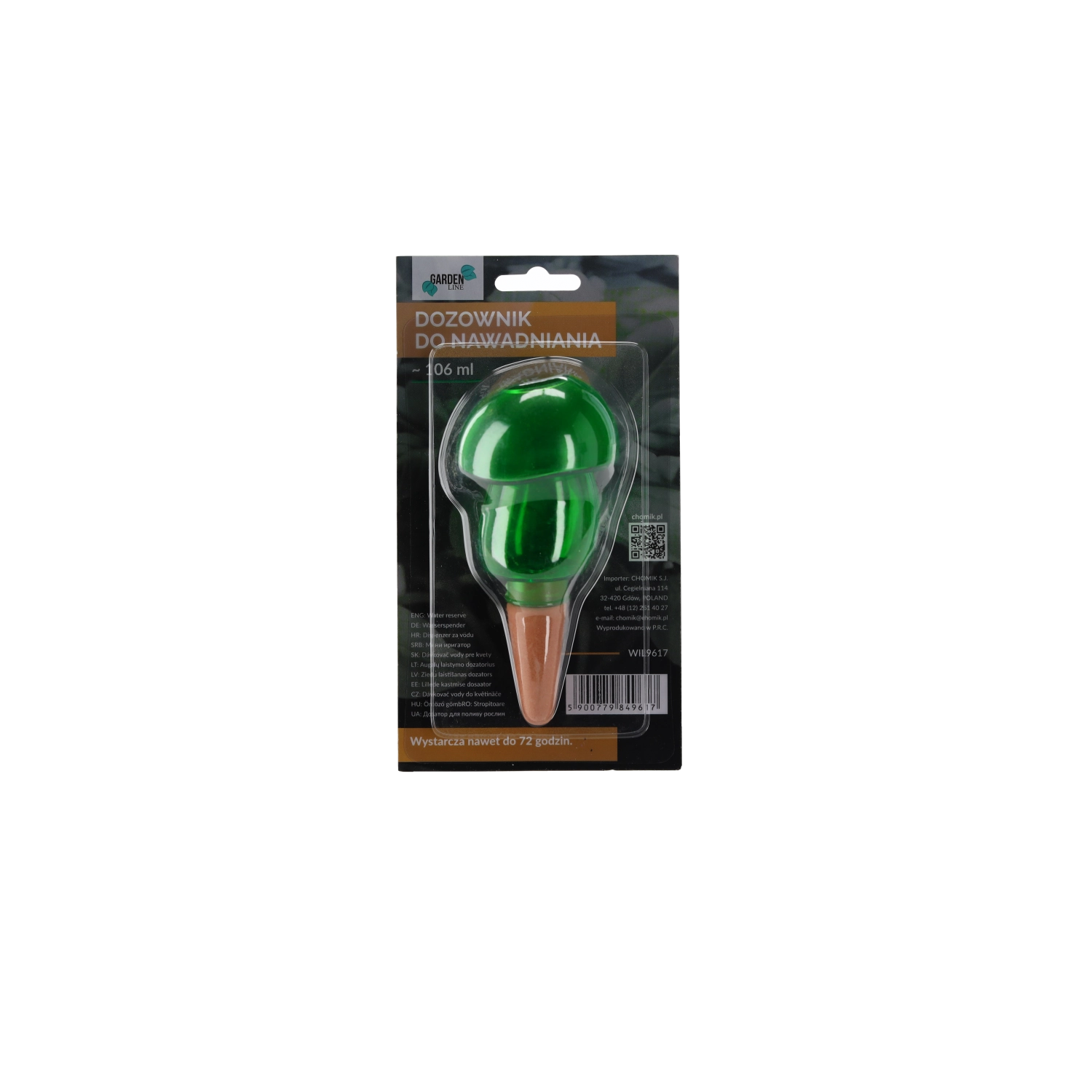 Den praktiske, dekorative vanddispenser til stue- og altanplanter sikrer deres regelmæssige vanding i op til 72 timer, mens du er væk. Det elegante design i form af en bamse, majskolbe eller svamp giver krukkerne et pift og sørger samtidig for langsom frigivelse af vand direkte til rødderne. Nem at bruge, med et gennemsigtigt hus til niveaukontrol og forskellige volumener til forskellige plante størrelser.