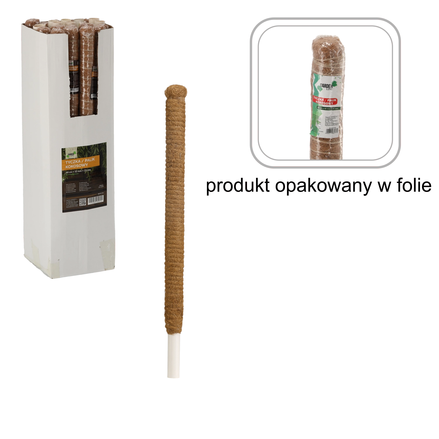Praktisk kokosstøtte af holdbar PVC med naturlige kokosfibre er ideel til dyrkning og formning af klatrende og hængende planter både indendørs og i haven. Takket være det naturlige fiber giver den fremragende grebspunkter for slyngtråde, understøtter sund vækst og planternes stabilitet. Længde 60 cm og diametre kokos 32 mm / rør 25 mm gør det let at tilpasse til forskellige plantetyper.
