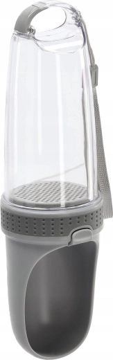 Denne smarte rejseflaske kombinerer vandbeholder og foldbar drikkeskål i ét. Med et enkelt tryk på knappen fylder du renden med vand, så hunden drikker komfortabelt og hygiejnisk uden behov for ekstra skål. Takket være sikker, ikke‑toksisk plast er den velegnet til daglig brug og nem vedligeholdelse.
