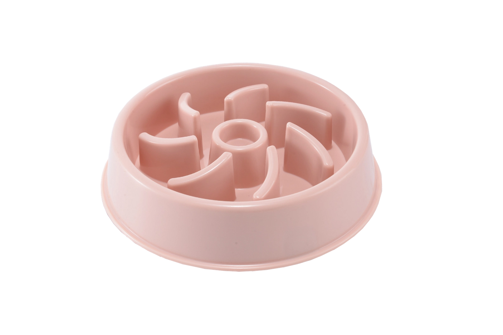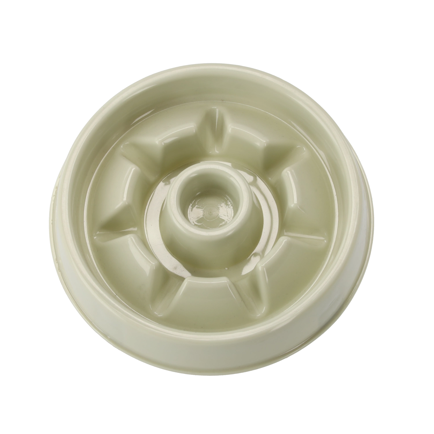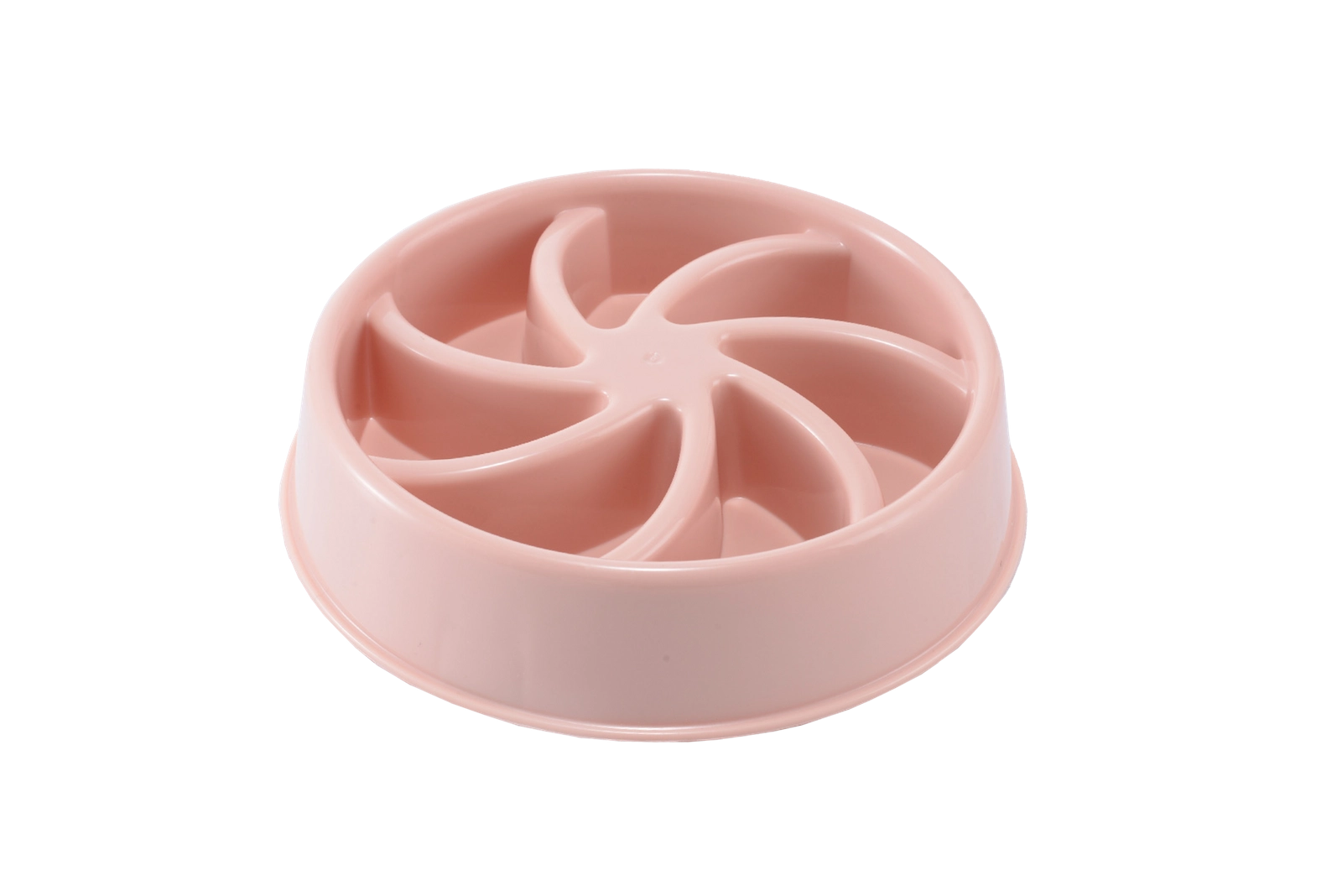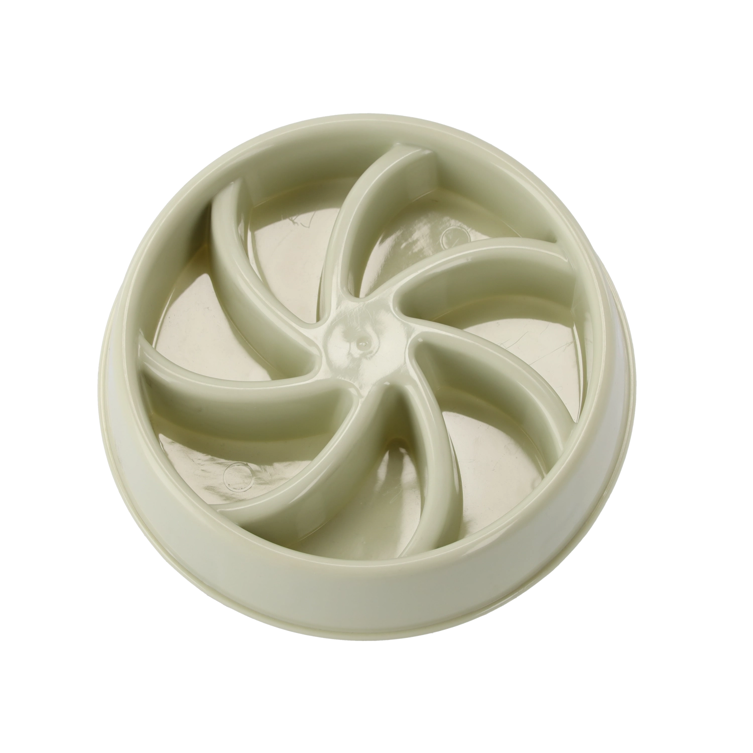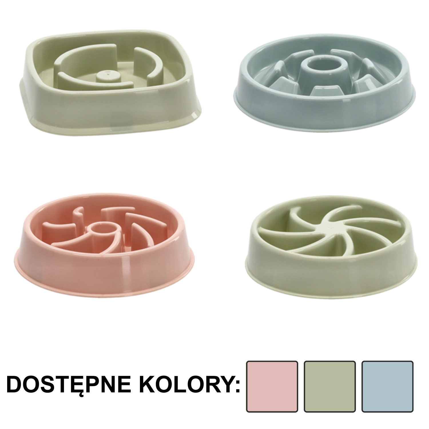 Den praktiske skål til hunde og katte er designet til naturligt at sænke spisetempoet. Indvendig labyrint eller spiraler deler foderet i mindre lommer, så kæledyret skal “jage” maden og derfor spiser roligere og langsommere. Det bidrager til korrekt fordøjelse, hjælper med at reducere overdreven luftslugning og mindsker risikoen for, at maden sætter sig fast.