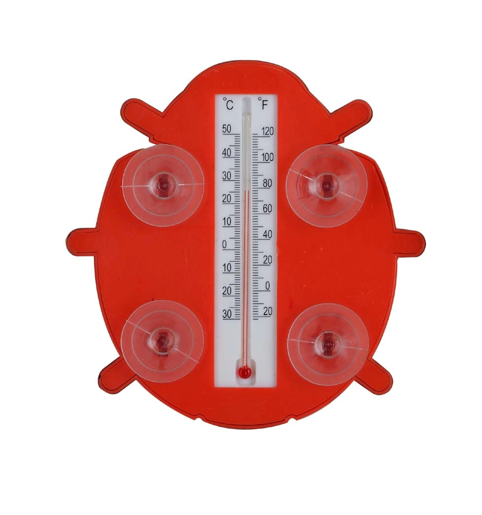 Det praktiske mariehøne-termometer er ideelt til brug både ude og inde. Du monterer det nemt på glatte overflader med sugekopperne og kan hurtigt tage det af ved vinduesvask. Takket være den tydelige skala kan du bekvemt aflæse den aktuelle udendørstemperatur direkte indefra.