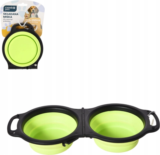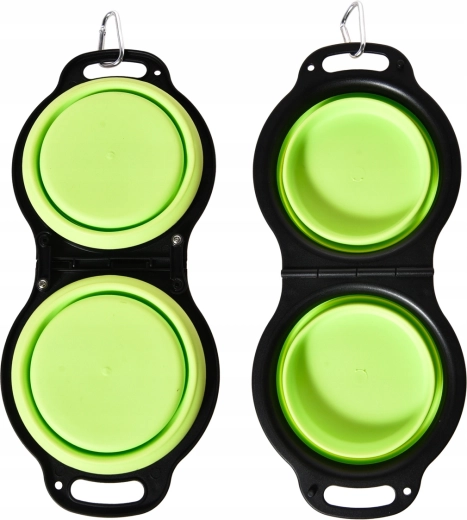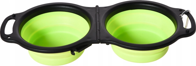 Med denne sammenklappelige dobbelt-skål har du altid både foder og vand til dit kæledyr ved hånden. De to adskilte rum rummer 2 × 350 ml, så du nemt kan servere vand og tørfoder på samme tid. Rammen er solid og stabil, de indvendige skåle er fleksible for hurtig sammenklapning og nem rengøring.