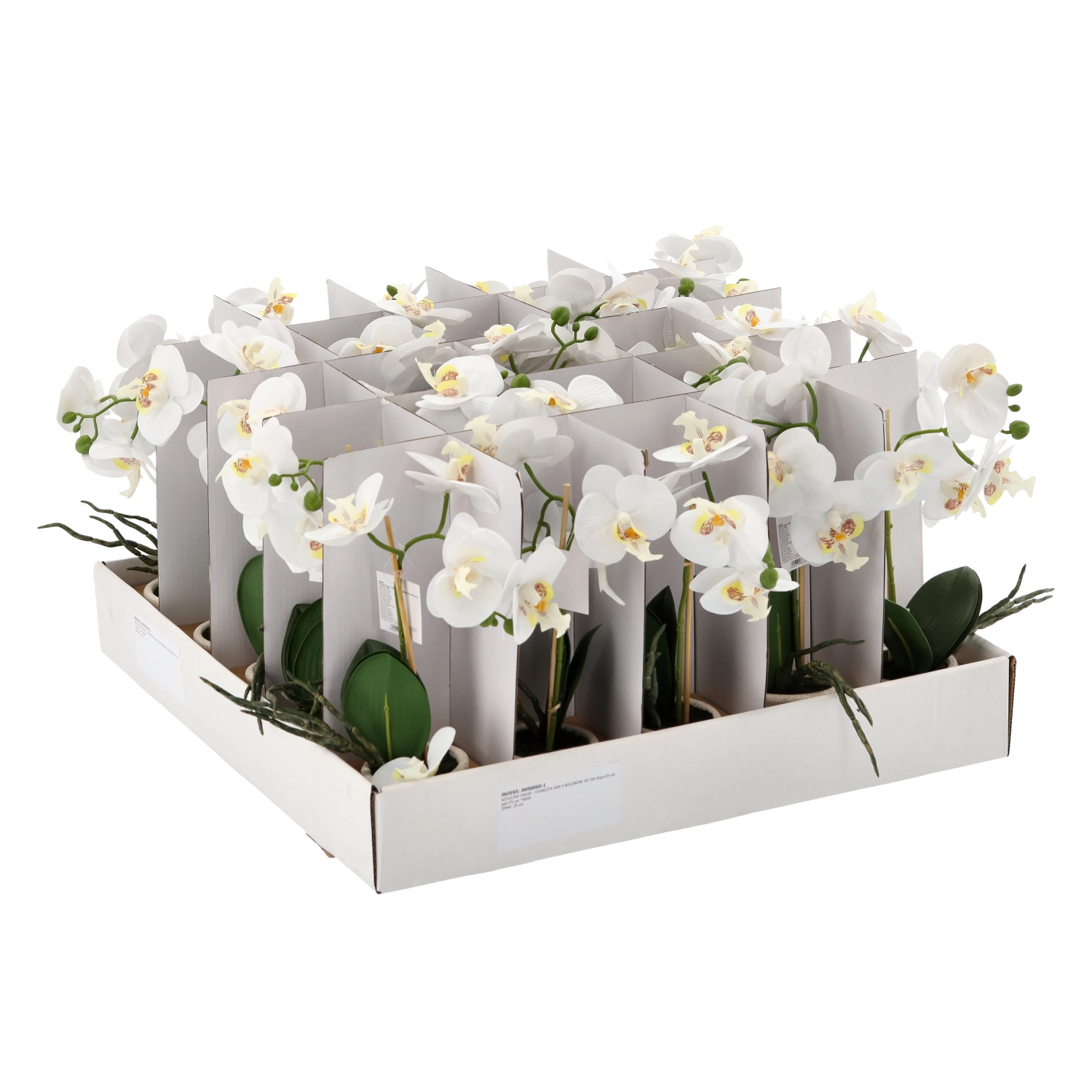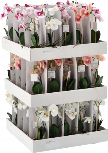 Hver enkelt er placeret i en dekorativ urtepotte og fås i et mix af 3 farver – hvid, pink og lyserød. Blomster, blade og stilke er udført med fokus på detaljer for et maksimalt naturtro udseende.